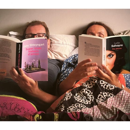 Pour l’exposition LireoLit – LOL , à voir dans la galerie photo à l’étage de la librairie, Guylaine Bouvÿ-Thabourey a non seulement mis en scène mais aussi interrogé les couples sur leurs habitudes de lecture au lit. Des entretiens intimes et drôles à écouter sur les téléphones installés dans la galerie et pimpés par La Fabulerie.