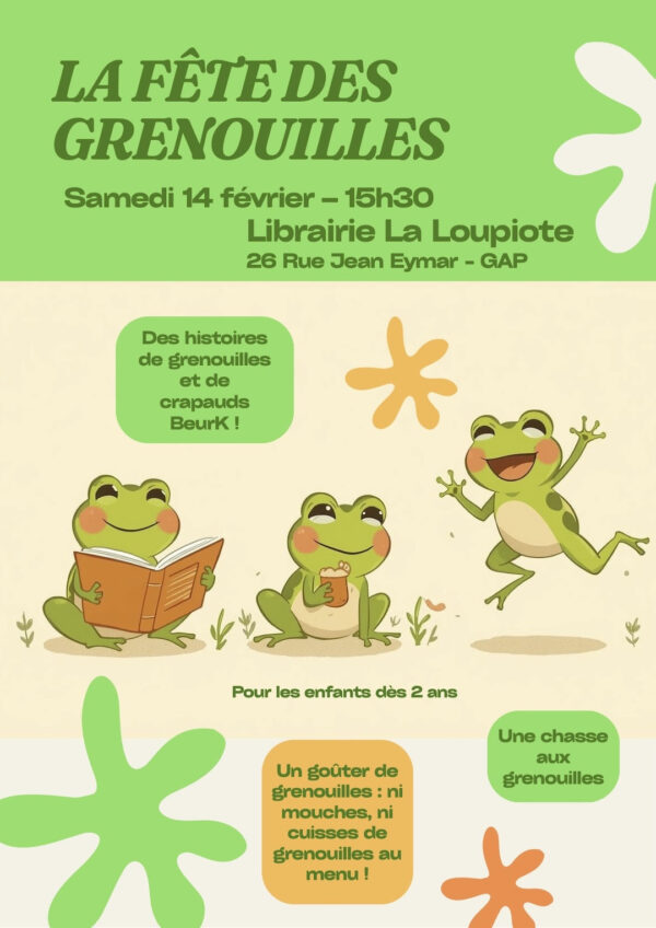 Clin d’oeil aux éditions du Sonneur. Des grenouilles, des tas de grenouilles se sont hissées sur nos étagères d’albums, se sont réfugiées dans nos bacs à livre, se sont amusées à se cacher dans des endroits qui décidément ne sont pas faits pour des grenouilles !