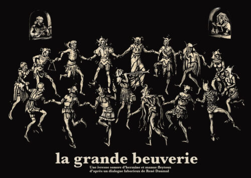 « La grande beuverie où une ivresse sonore d’hermine et manue fleytoux avec Nicolas Gardrat à la guitare d’après un dialogue laborieux de René Daumal. »